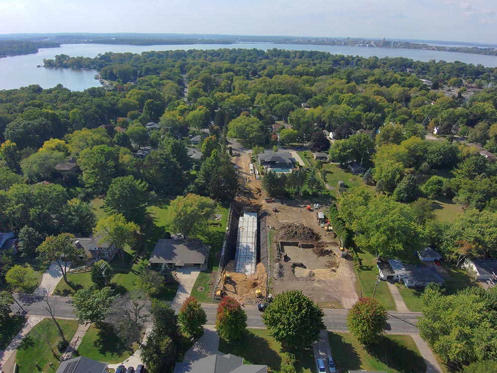 The Kelly Place Stormwater Facility project involved Speedway installing a high-capacity underground wet detention chamber in a narrow right of way in the city of Monona. The detention system captures sediment, phosphorus, and urban pollutants before they enter the lake and slows the flow of water to prevent scouring of the
